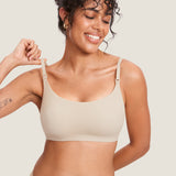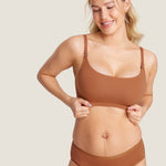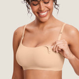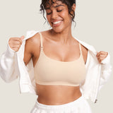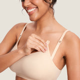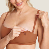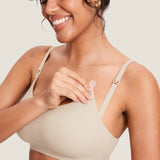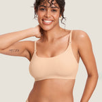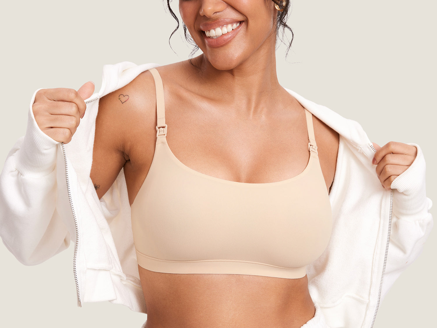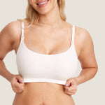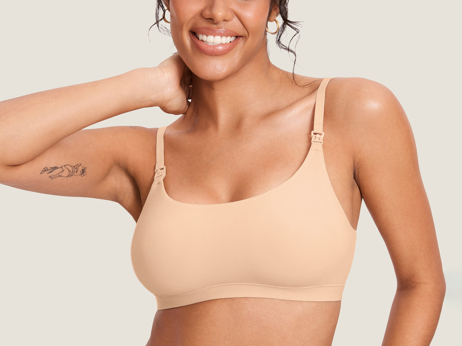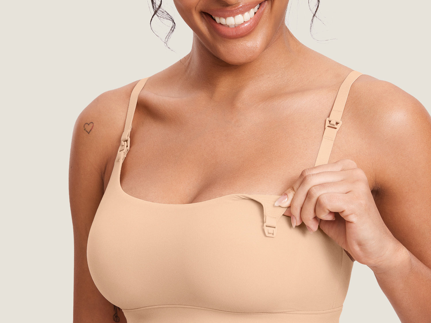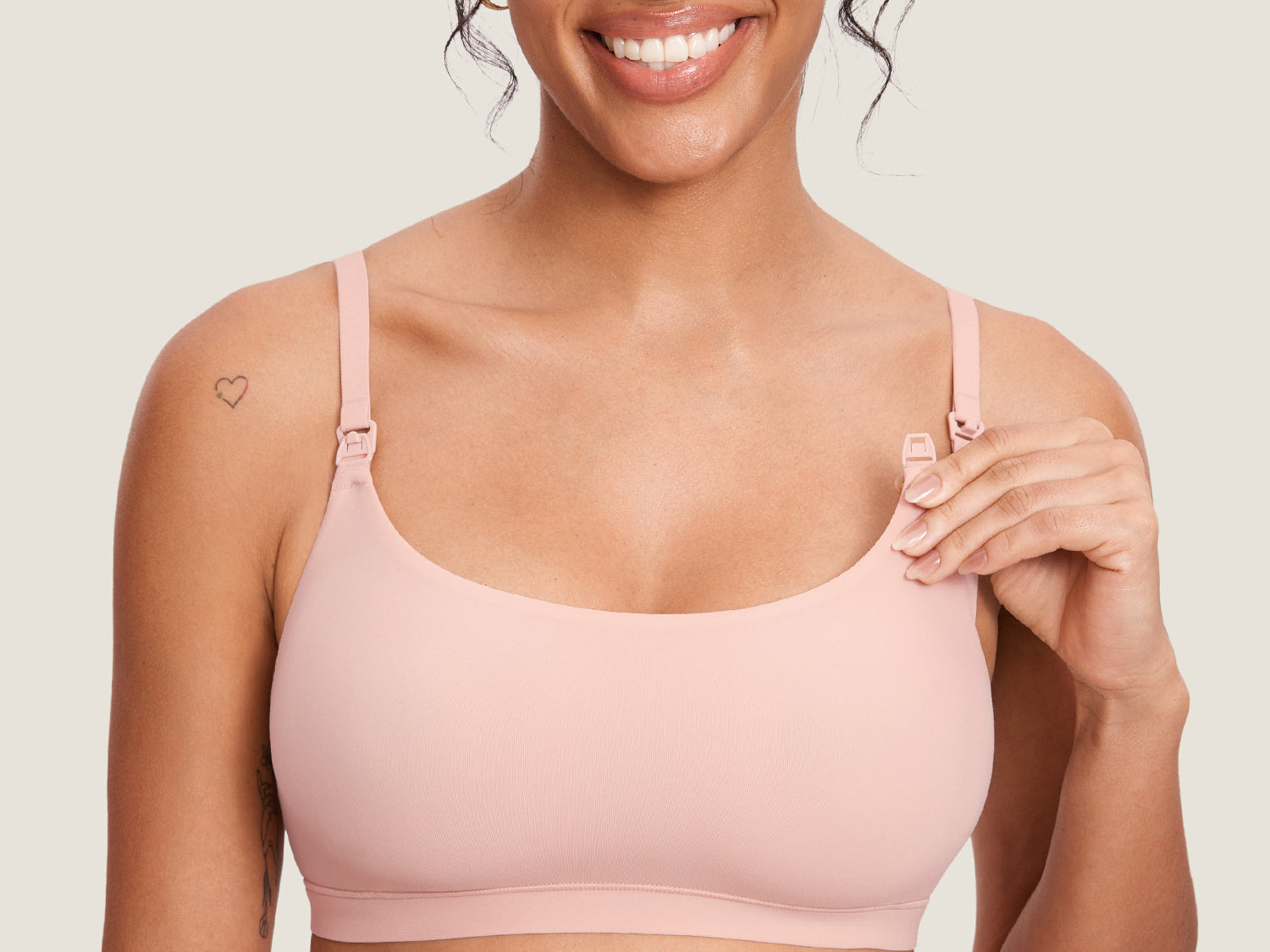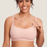 Soft, lightweight INBARELY™ fabric feels barely there. Seamless, padless, and wirefree for a smooth profile. Scoop neck with double-layer coverage. Stretchy with adjustable straps for a perfect fit. One-handed nursing clips for easy breastfeeding. Ultimate comfort for nursing moms!