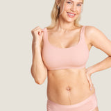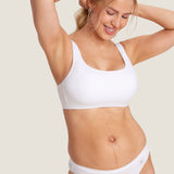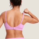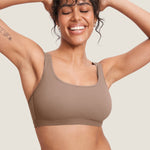 - Wireless design with no padding, reducing breast constriction.