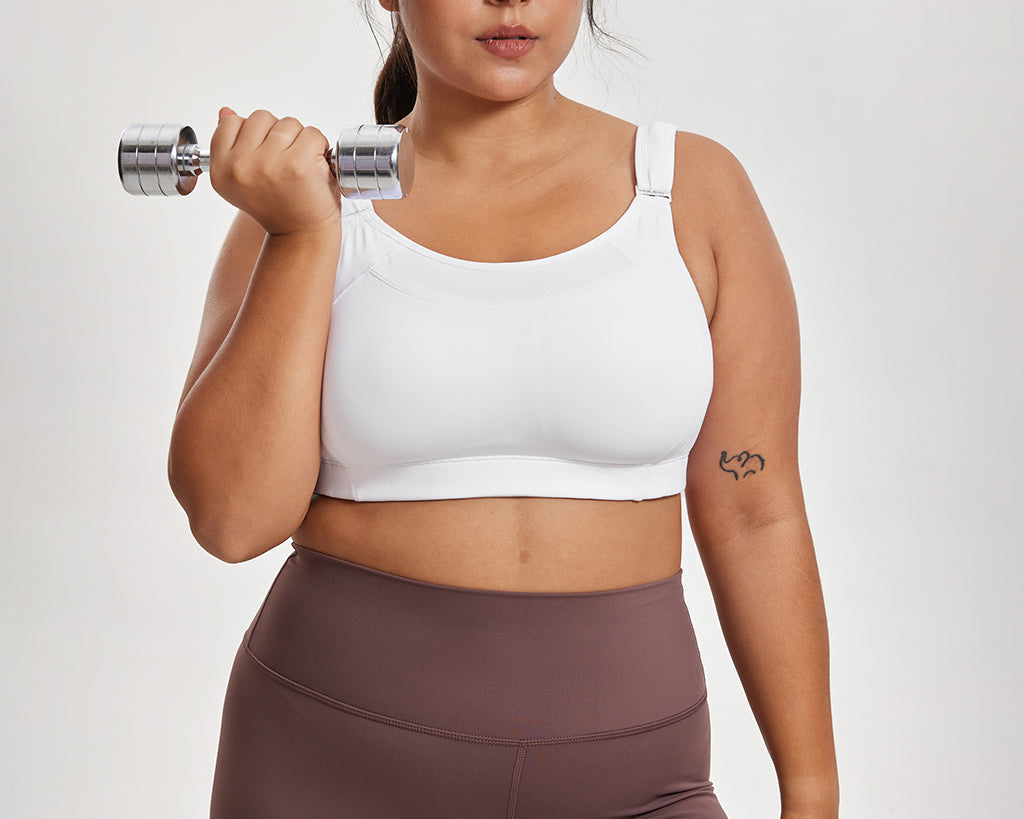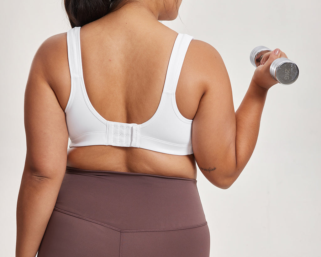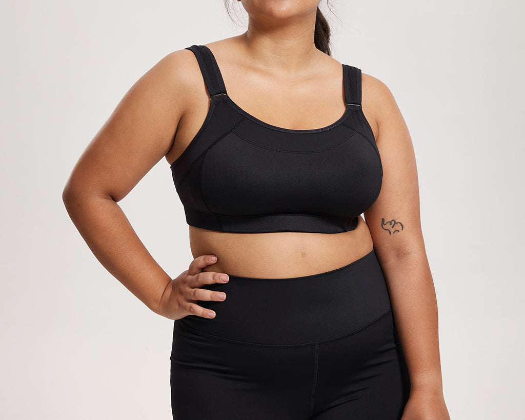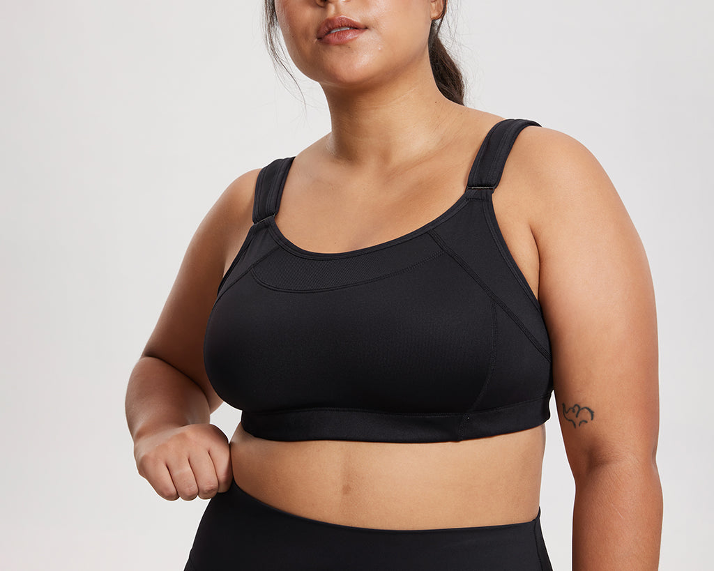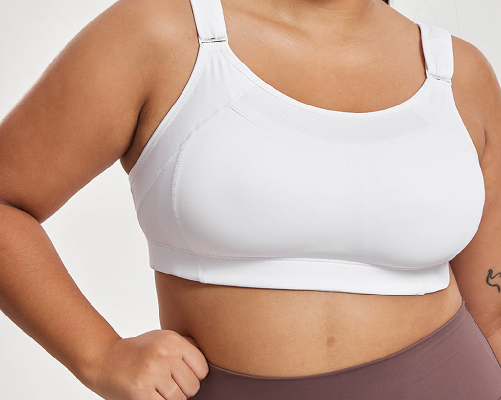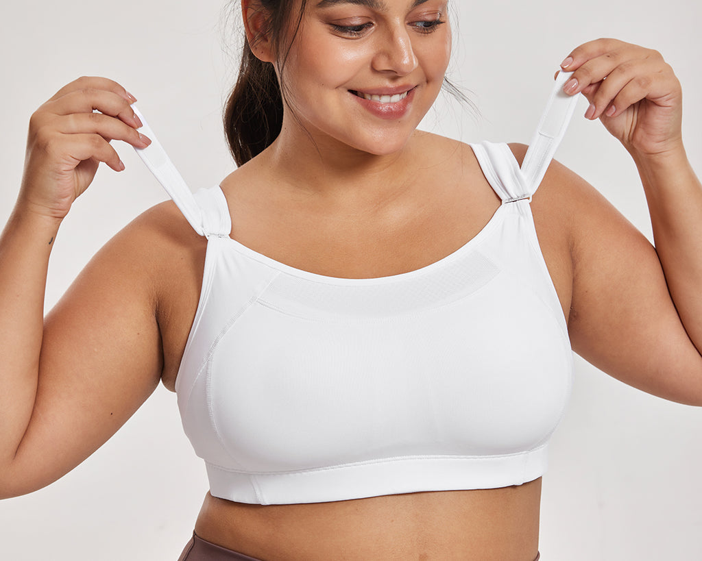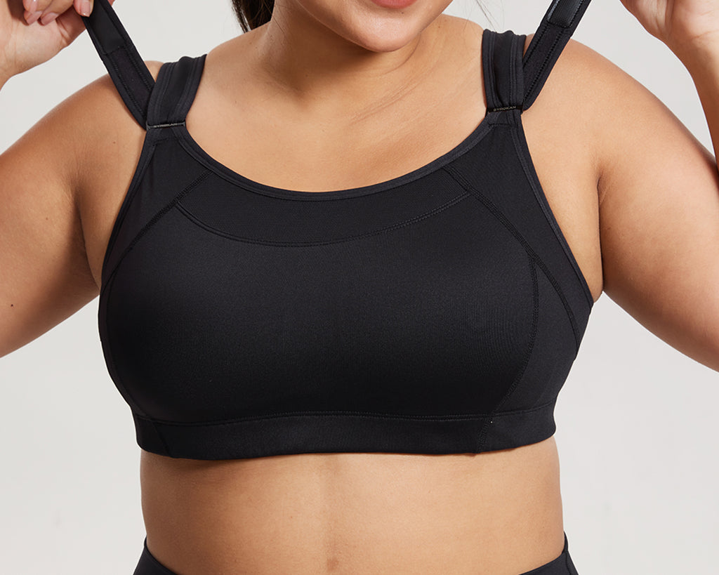 Front Velcro straps with metal buckle provide customizable fit and support, while breathable mesh and double-knit spacer cups provide optimal comfort and coverage. Elevate your active lifestyle with confidence and comfort in this sports bra that seamlessly blends functionality with style.