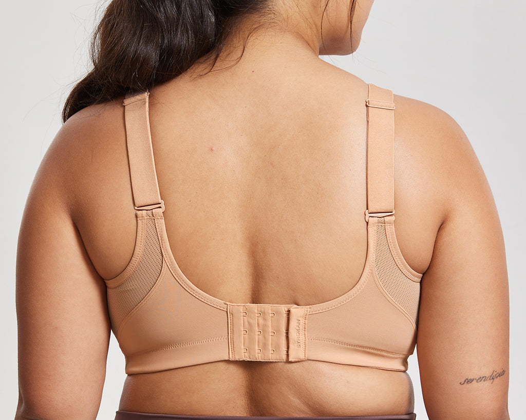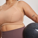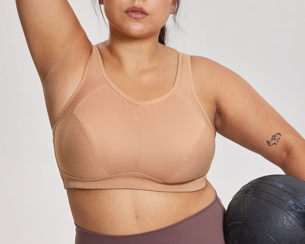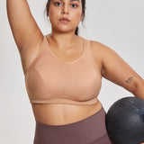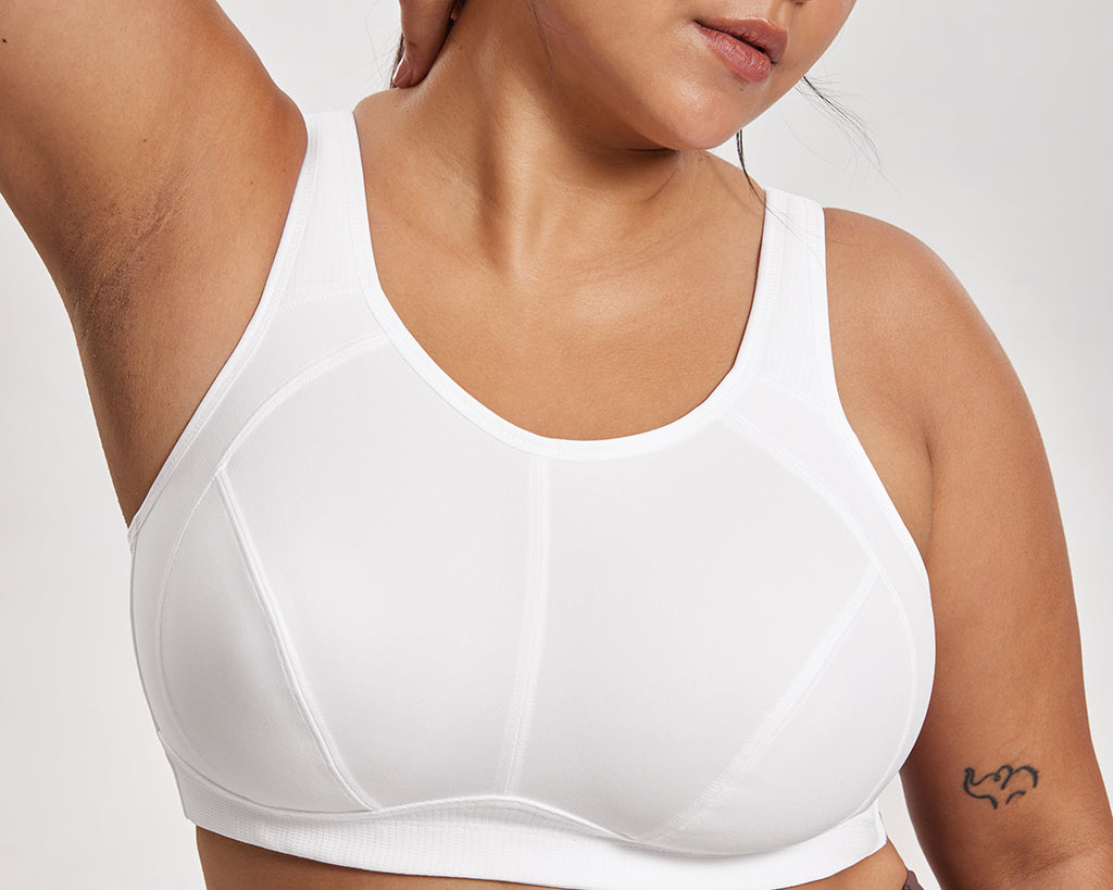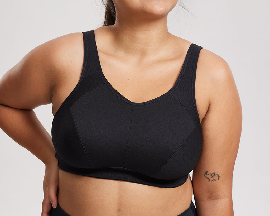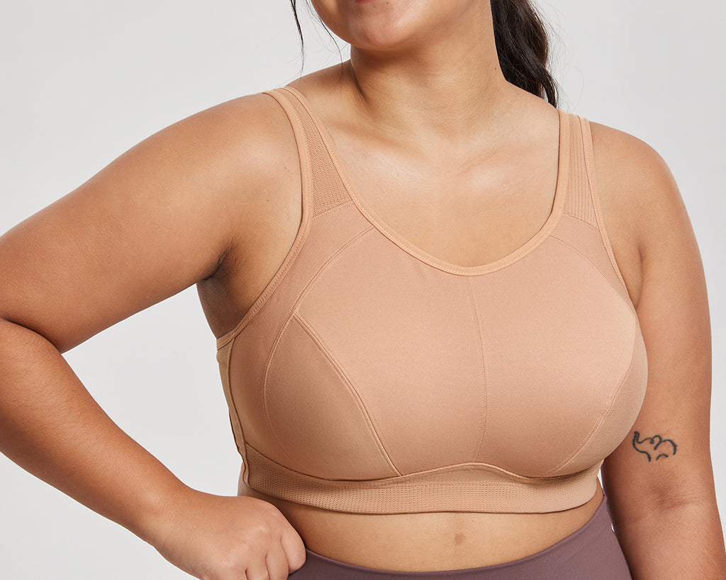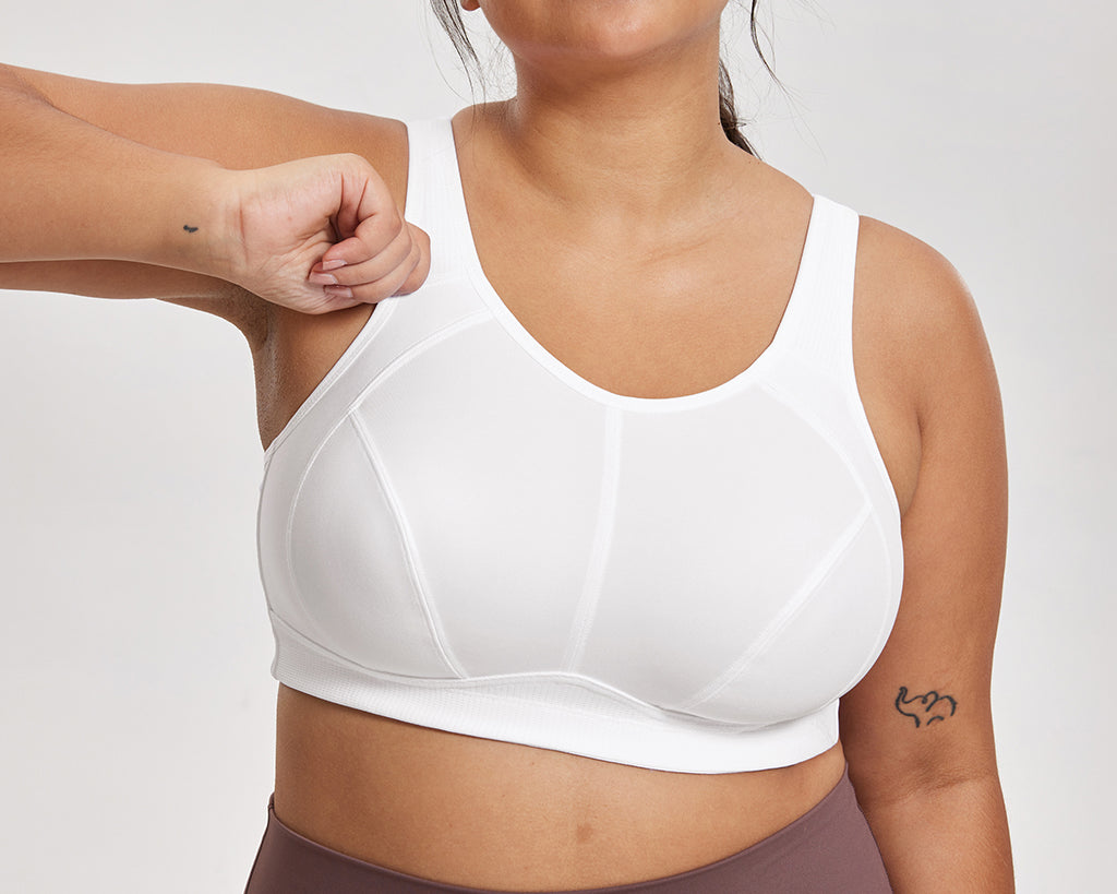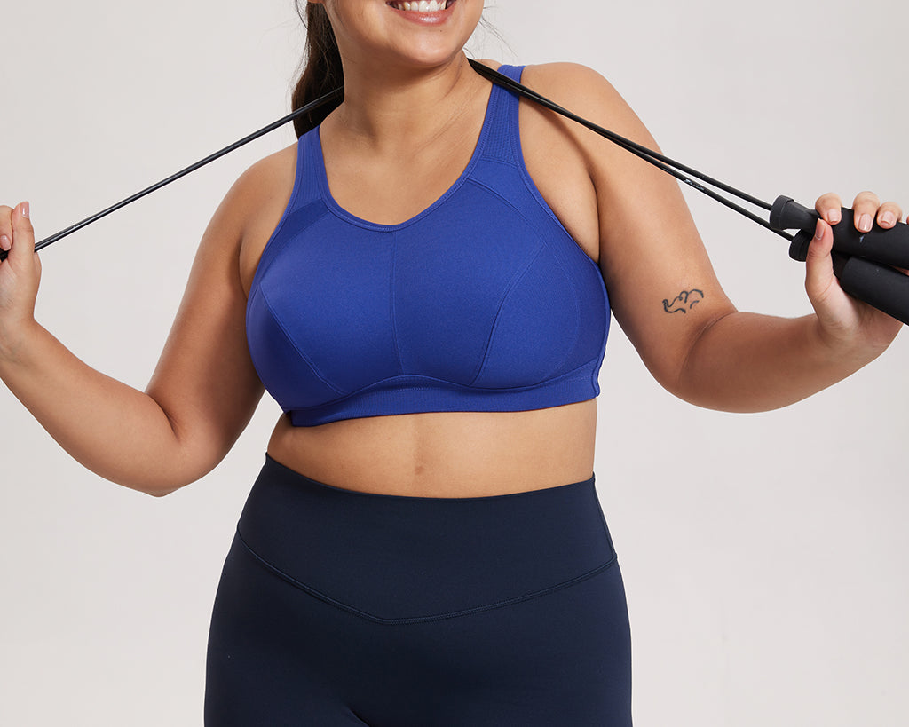 Transform your workouts with our high-neck sport bra. The high neck and mesh panels ensure comfort and breathability, while adjustable, cushioned straps ensure a personalized fit for your active lifestyle, making every movement a statement of confidence.