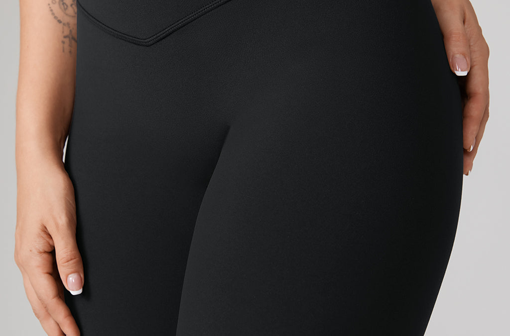 - No front seam; the waistband features a subtle “V” seam to beautify your waist