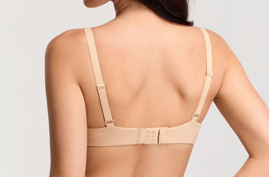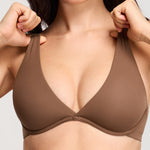 This plunge bra combines natural shaping with effortless comfort, thanks to its breathable double-layer fabric and unpadded V-cut cups. Designed for a smooth, versatile look under everyday outfits, it offers gentle underwire lift and customizable fit through adjustable straps and back closure.