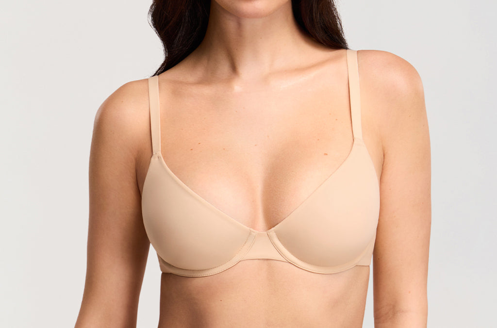 This balconette bra blends natural shaping with a smooth, feminine look. Featuring soft double-layer cups, gentle underwire support, and a flattering low neckline, it pairs effortlessly with low-cut tops while offering customizable comfort through adjustable straps and silky, all-day-wearable fabric.