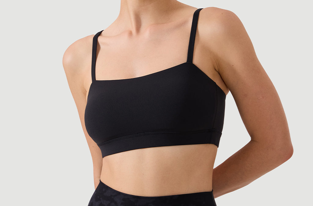 - Square neck bandeau sports bra shows your charming neckline