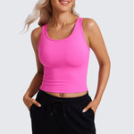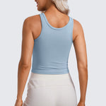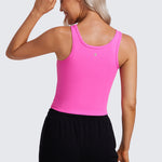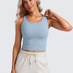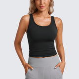 Elevate your active wardrobe with this irresistibly soft and stretchy tank top, designed for ultimate comfort and style. Stylish double-lined design, offers you a supportive fit without being see-through. The alluring scoop neck, perfectly frames your neckline, adding a touch of charm to your everyday look.