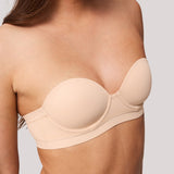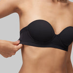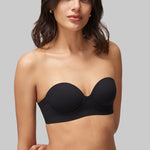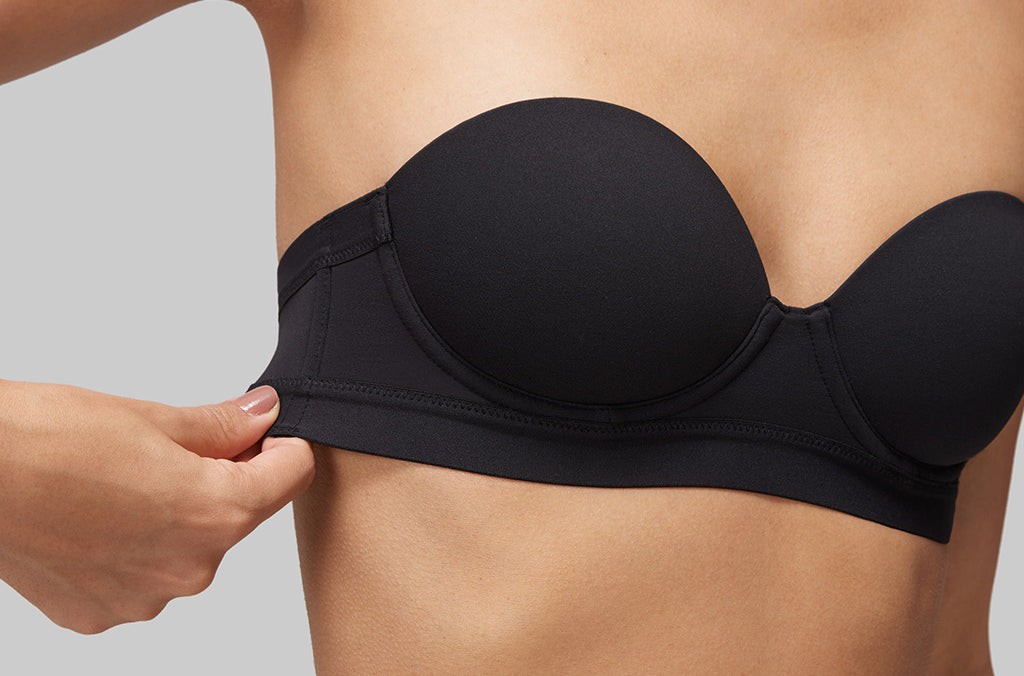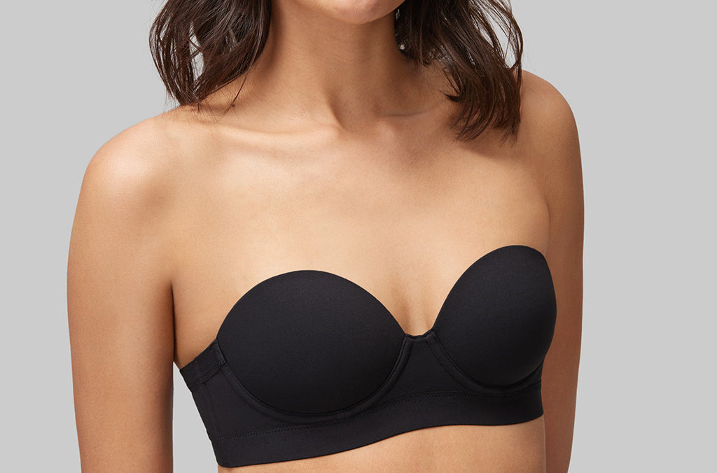 - No-slip silicone strip with convertible straps provides secure wear for multiple occasions and outfits