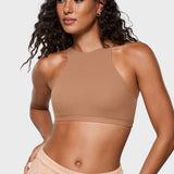 This ultra-soft, stretchy bralette offers a dual-layer fabric for support and a non-padded, non-wired design for a natural shape. Versatile for daily wear or a stylish high neck crop top, it's the perfect blend of comfort and fashion. Easy pull-on style for a hassle-free fit.