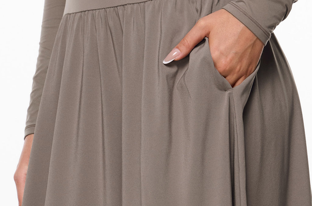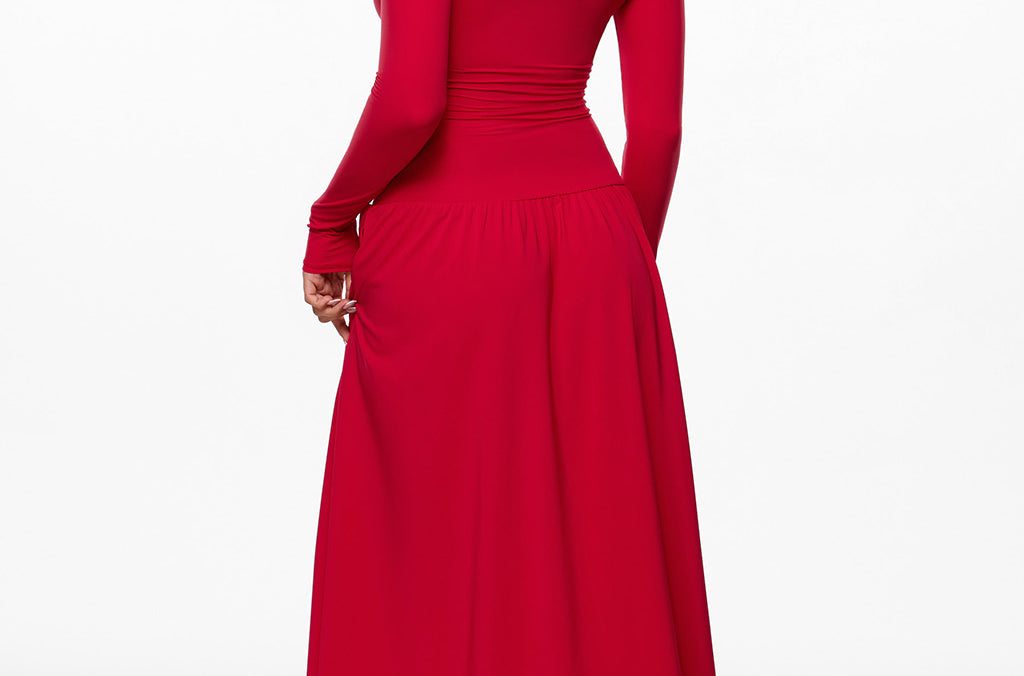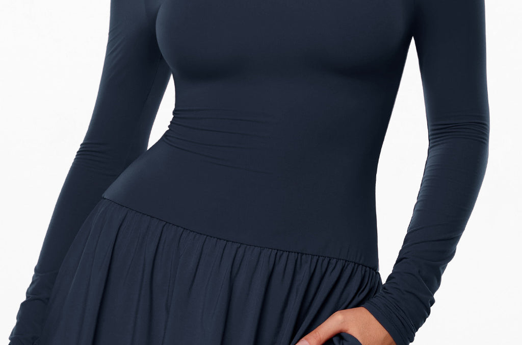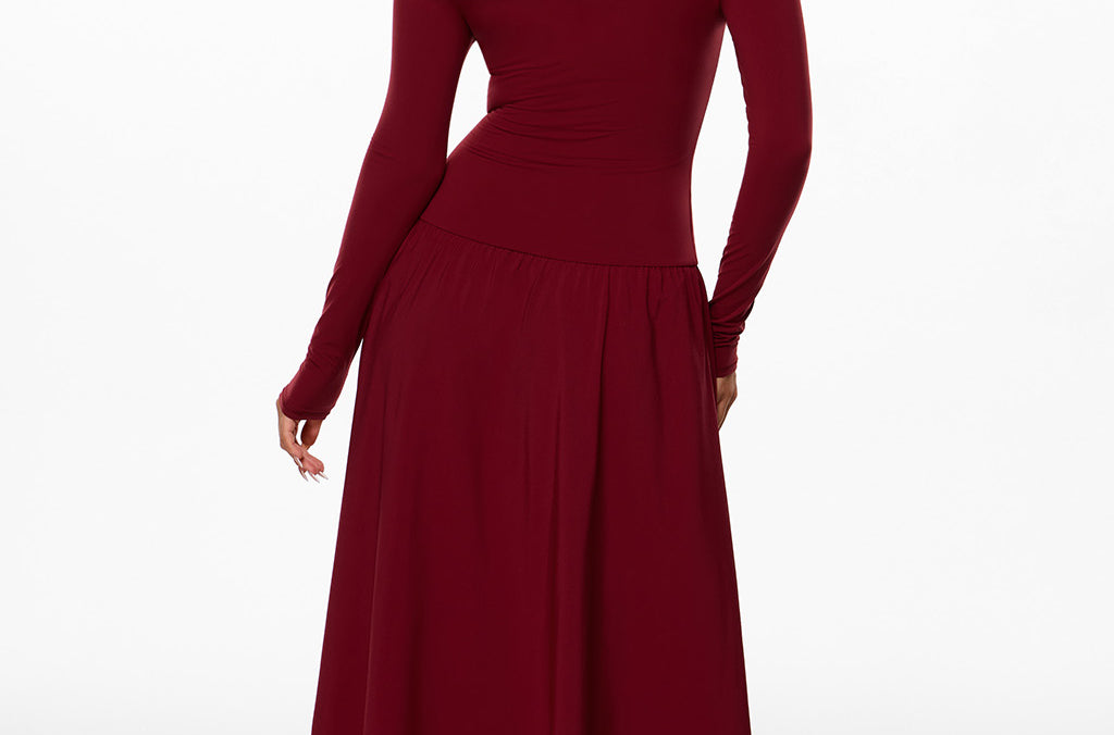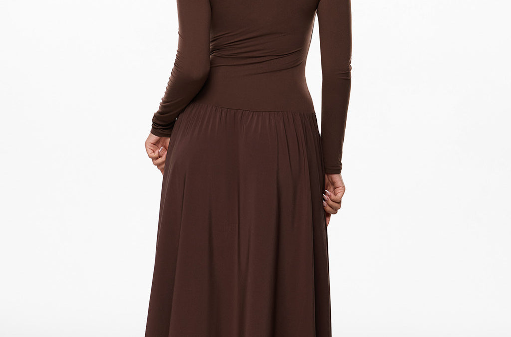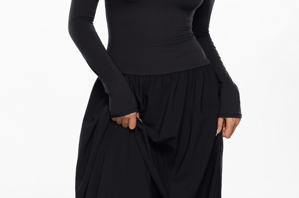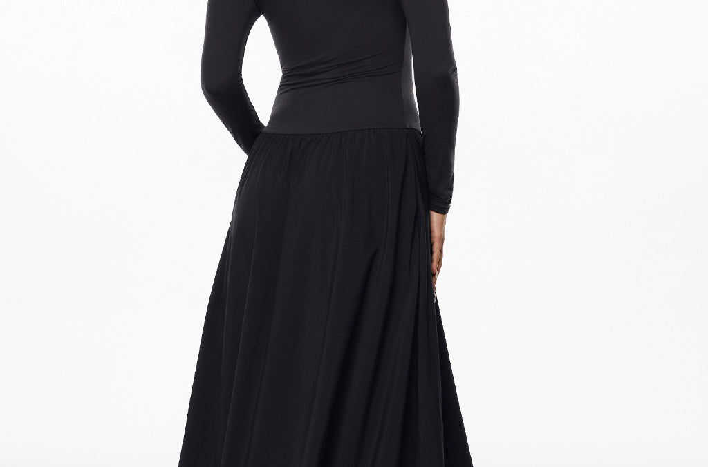 - Single-layer skirt with fluid drape enhances movement and flatters curves