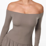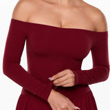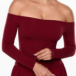 - Off-the-shoulder long-sleeve design creates an elegant, feminine look
