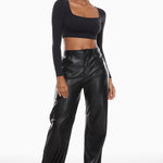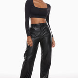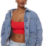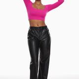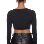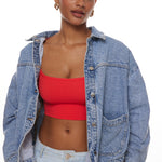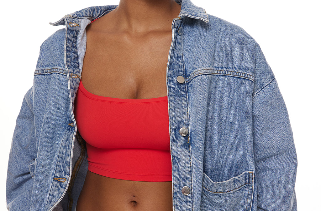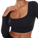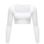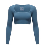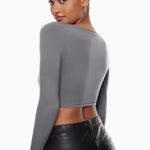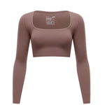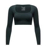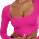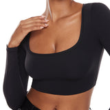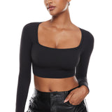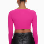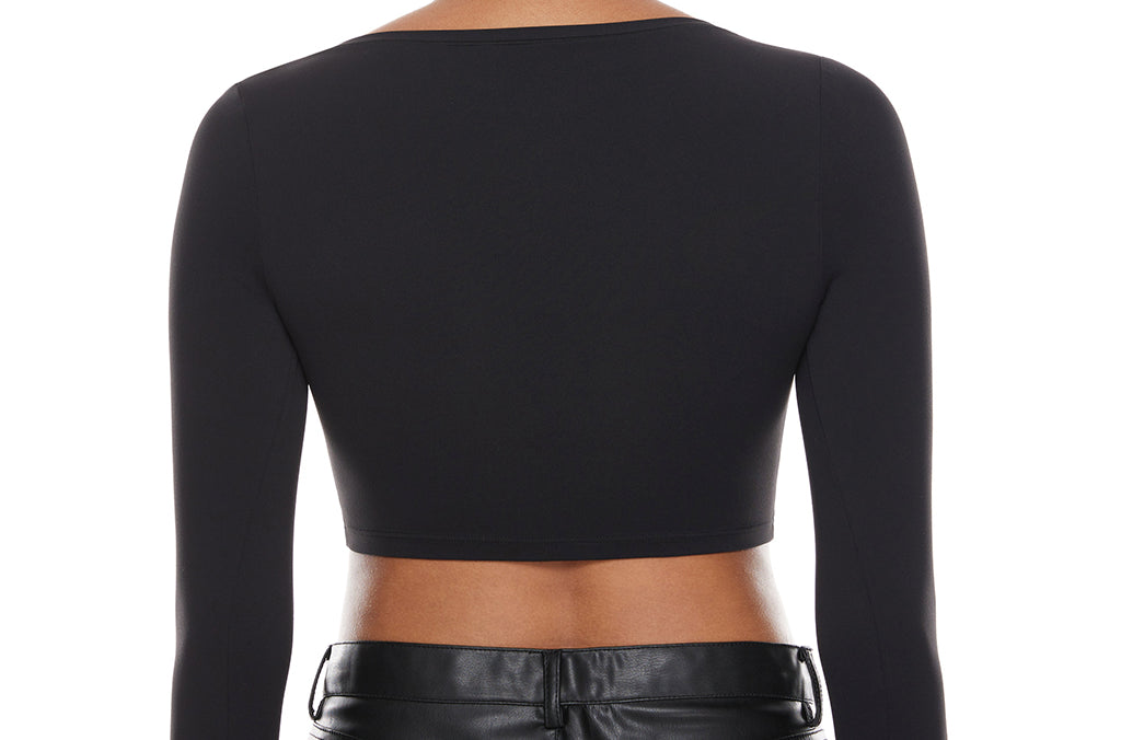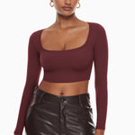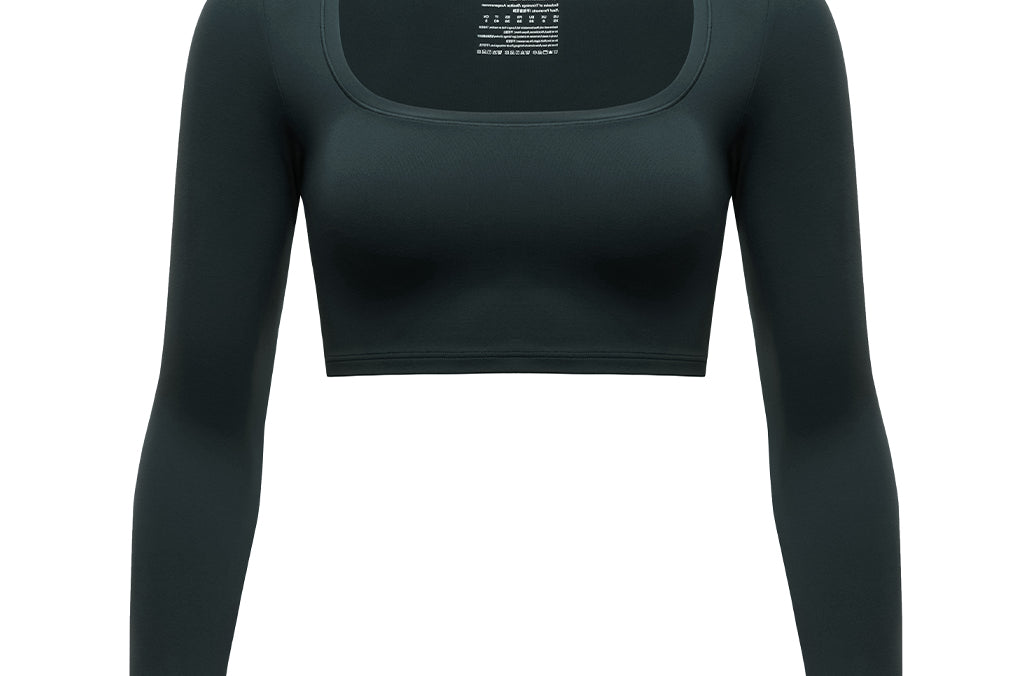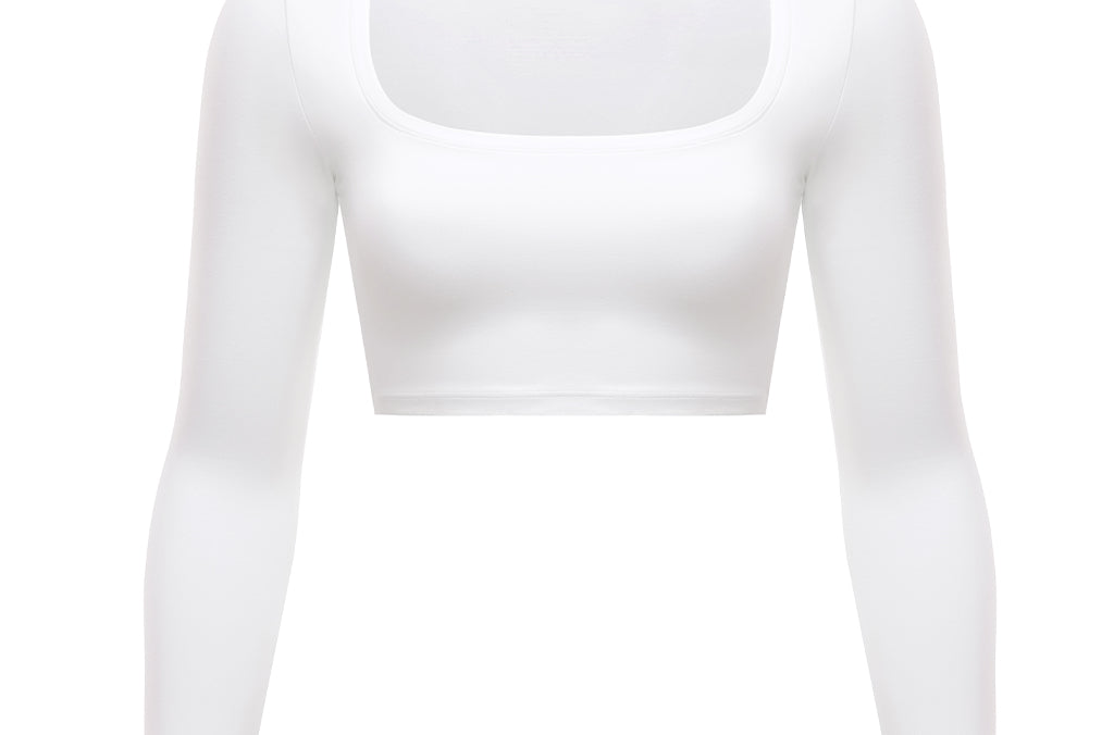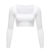 "Natrelax" fabric: second-skin feel, never see-through. Chic square neckline, 4-way stretch for a sculpted look. Versatile fitted crop top, perfect day to night