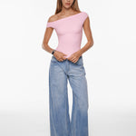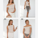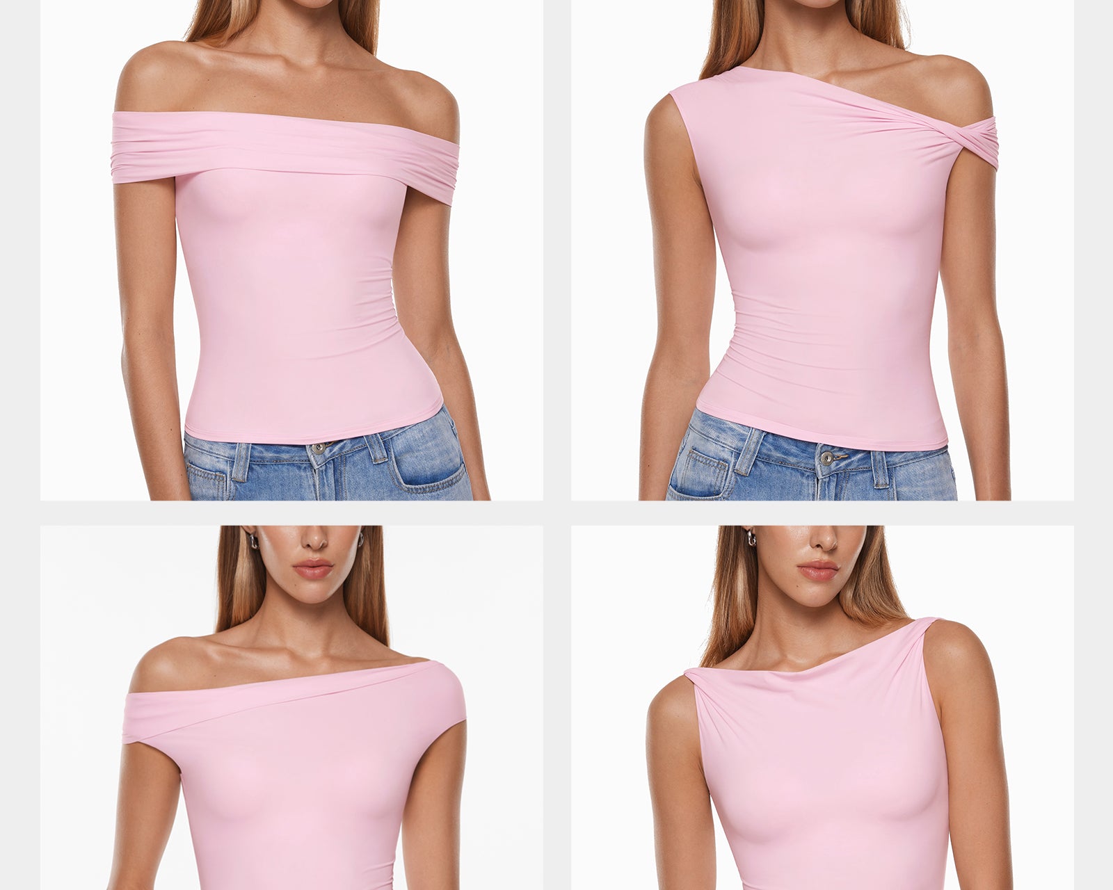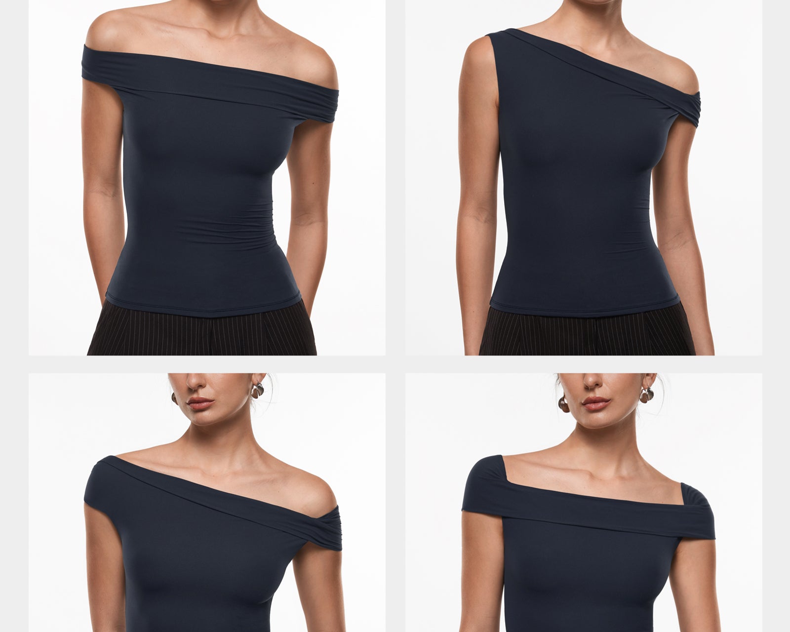 This top is a fashion game-changer with ultra-soft, stretchy fabric that feels like a second skin, meets your multiple fashion needs in summer. It offers versatile ways to wear, such as one shoulder, off the shoulder, or classic top, from asymmetric to symmetric. Lightweight, breathable, and not see-through. Perfect to match with jeans, skirts, or cargo pants for a stylish or casual look.