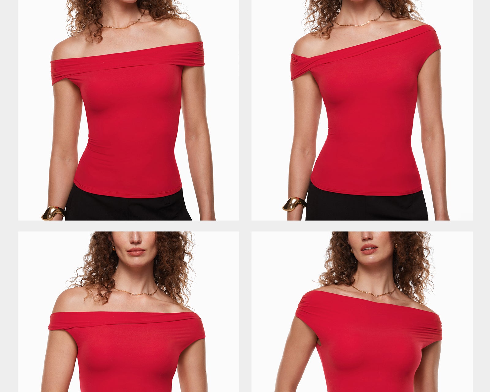 - Versatile - Shoulders can be on or off, asymmetric or symmetric, more than six ways to wear