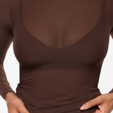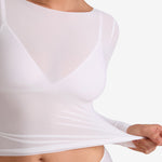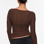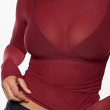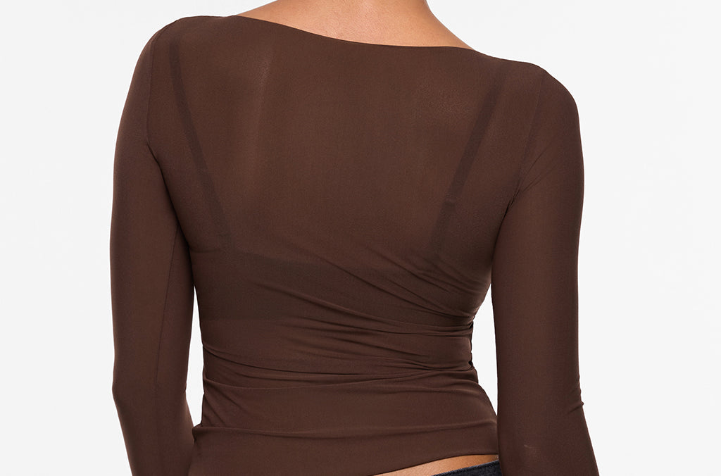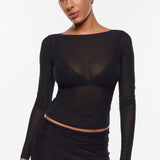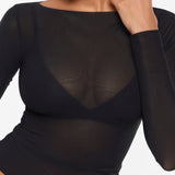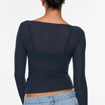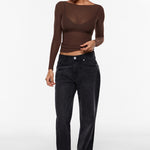 From the Cosnufy Collection, this mesh boat-neck top captures an easy balance of sensuality and comfort. Its airy, lightweight feel and delicate transparency add a touch of effortless charm—made to complement everything from casual denim to sleek night-out looks.