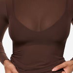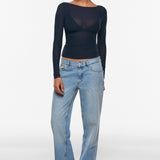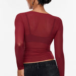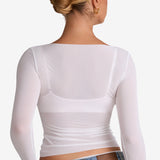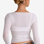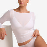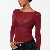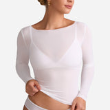 Cosnufy® Mesh Boat Neck Long Sleeve Top