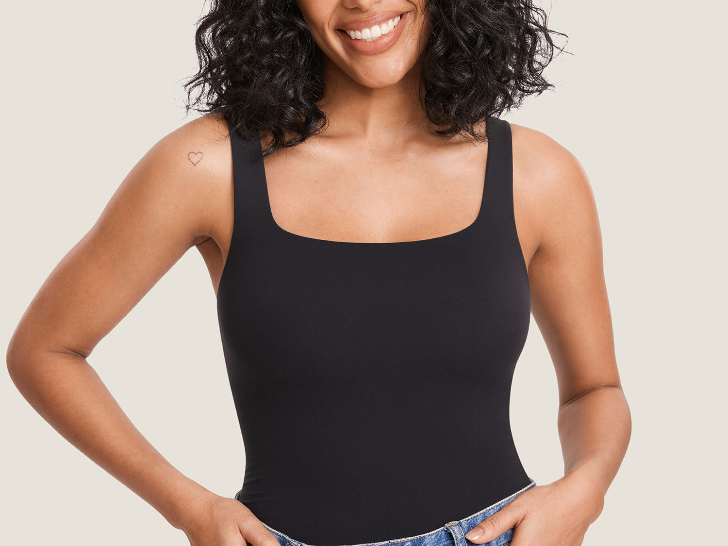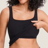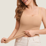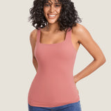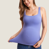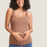 Lightweight, soft, and stretchy, it fits perfectly through pregnancy and beyond. With a built-in bra and removable pads, it adapts to your needs. The square neck and wide straps are stylish and versatile. Perfect for sports, workouts, and daily wear. Embrace comfort and style with MOMANDA!