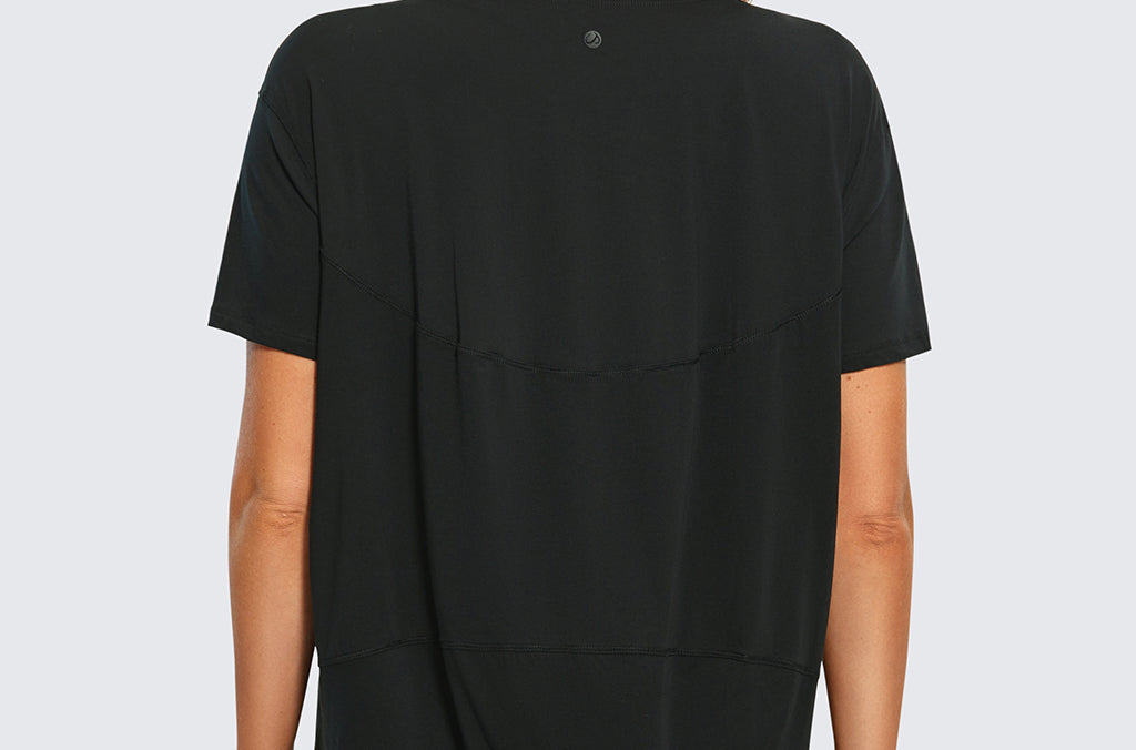 - Slightly longer back hem and wide shirt shape with beautiful drape