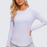 Pima Cotton collection is super soft and feels great against your skin, aiming to offer a comfortable feeling to you. A classic crew neck long-sleeve shirt with a minimalist and stylish style. Suitable for yoga, workout, sports, or daily wear.