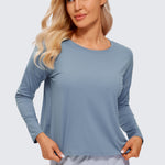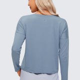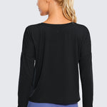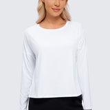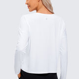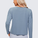 Ultra-lightweight & soft fabric with good breathability to keep you cool and ultra-fine brushed feel for a comfy feeling. Cropped loose long-sleeve shirts featuring UPF 50+ offer free motion, allowing you to move without restraint. Ideal for workout, running, hiking, and other outdoor activities.