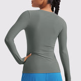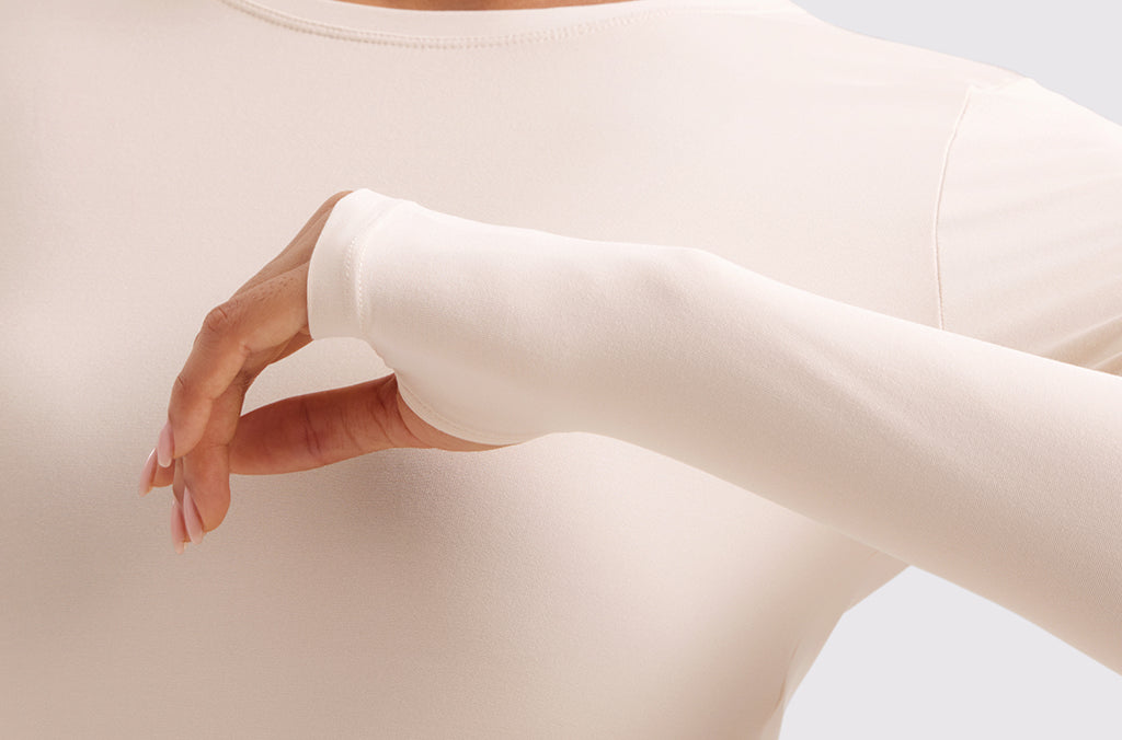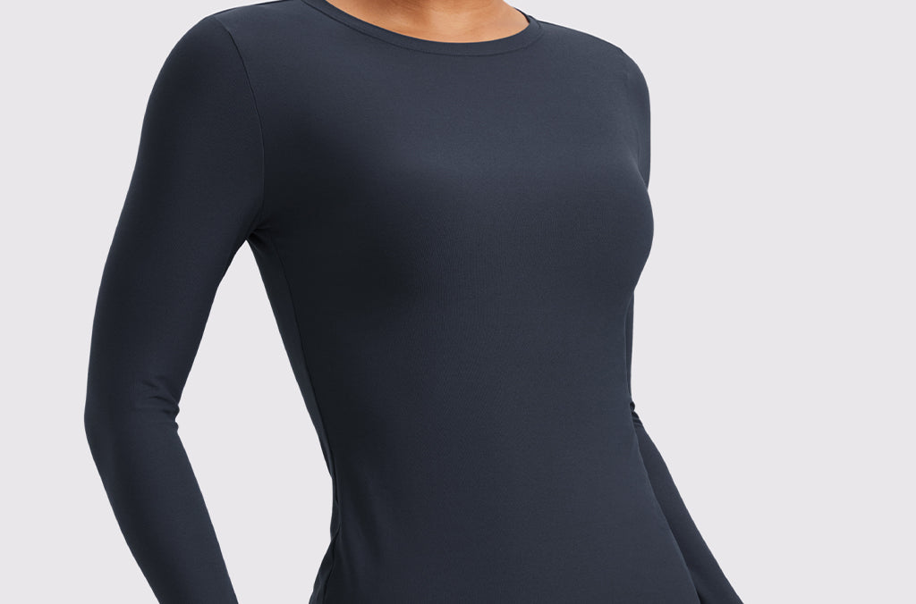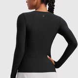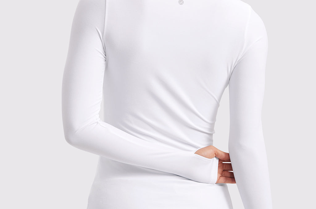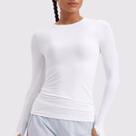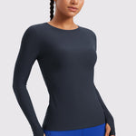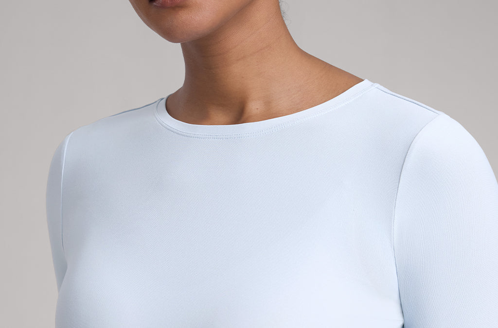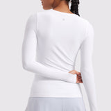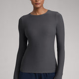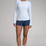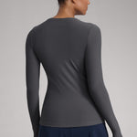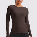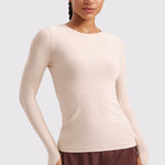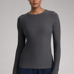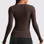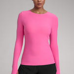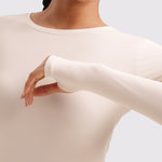 This fitted long-sleeve top combines barely-there softness with performance-ready comfort. The breathable, fast-drying fabric hugs the body while keeping you cool through every stretch or stride. A high crew neckline adds timeless simplicity, while thumbhole cuffs ensure sleeves stay in place—so you stay focused, not fussing with your fit.