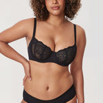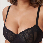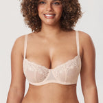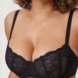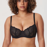 Show off your charm in this see-through lace balconette bra. Lightweight, breathable, with poke-free underwire, unlined cups for natural shape, and fully adjustable straps for the perfect fit.