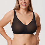 This ultra-soft mesh bra offers breathable, lightweight support with a natural shape, featuring full-coverage cups to prevent spillage. The see-through mesh adds a touch of allure, while the adjustable wide straps ensure a comfortable, dig-free fit.