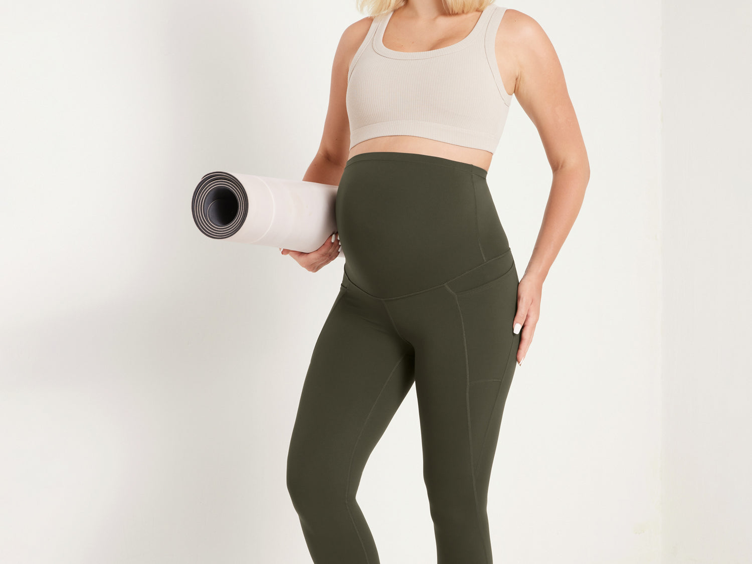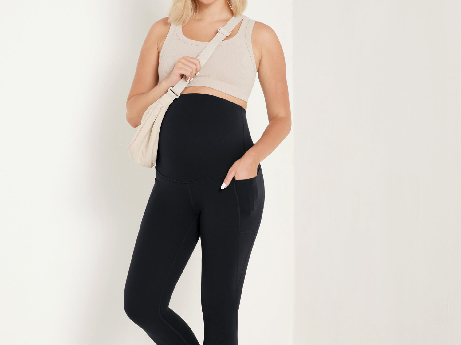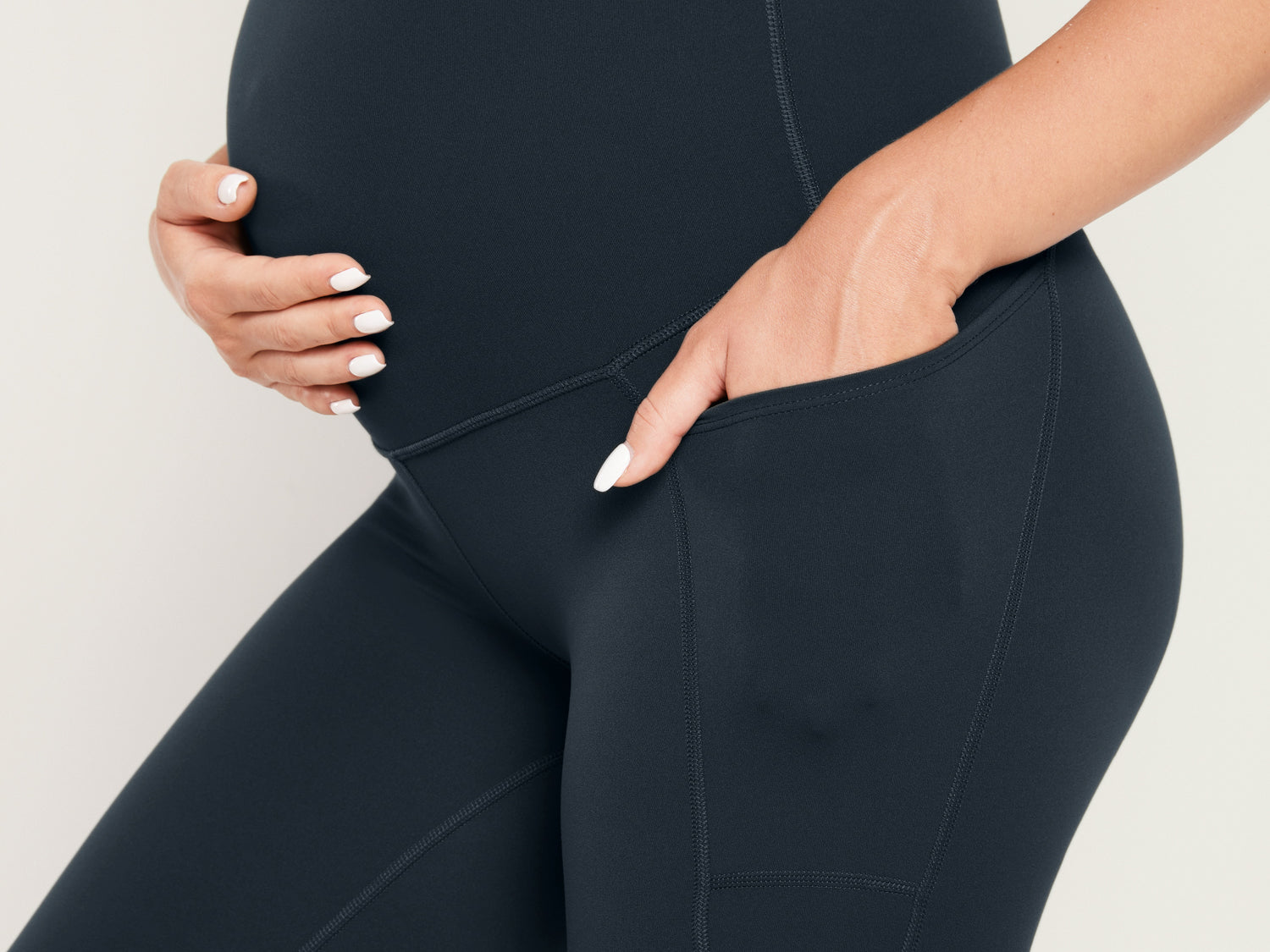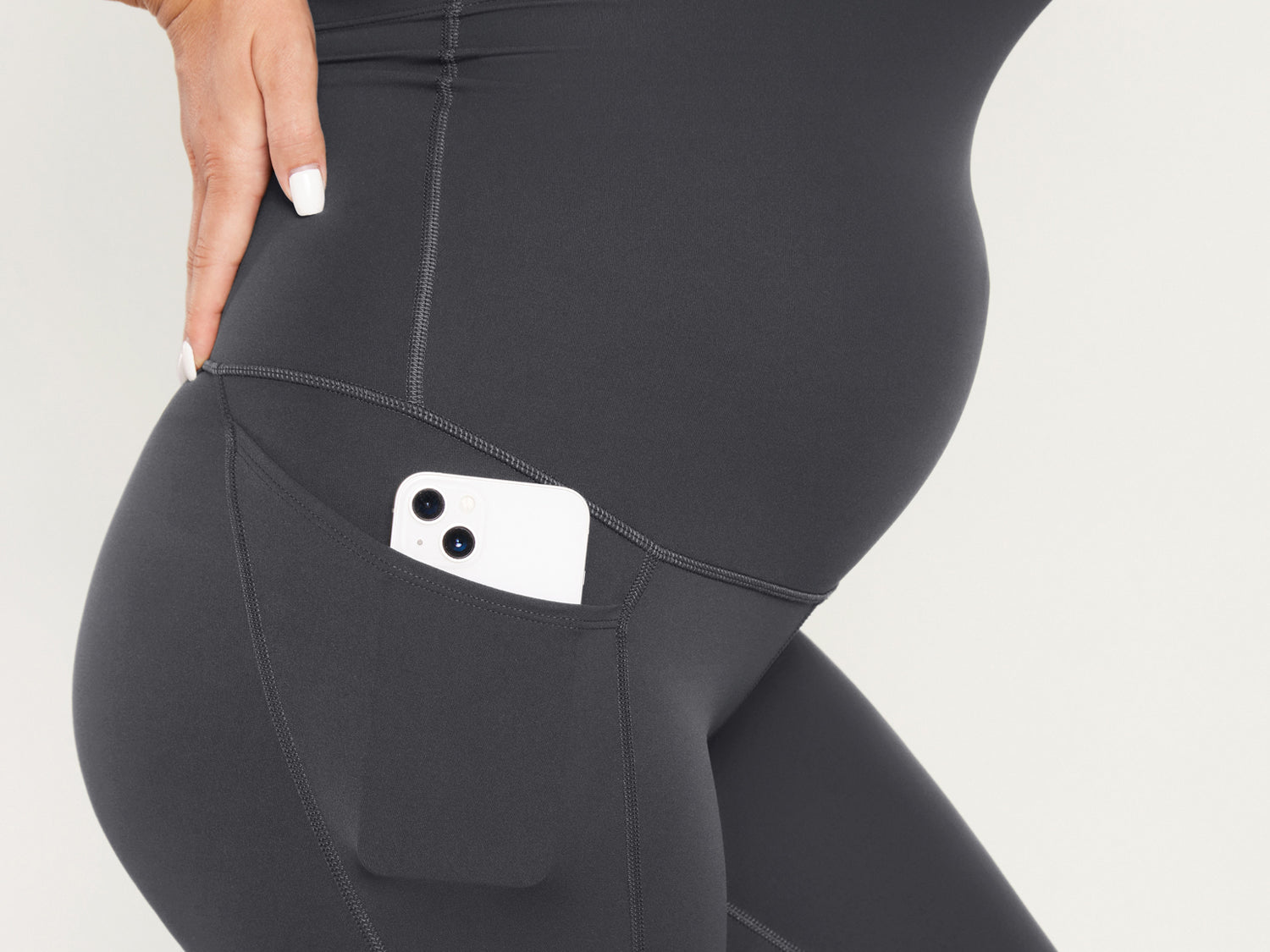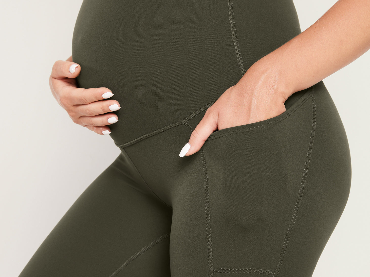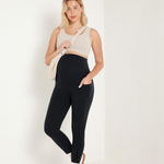 It's the softest, stretchiest companions for pregnancy and beyond. They offer full belly support with a high rise and pockets for essentials, staying put without rolling. Moms love them for their comfort, coverage, and convenience.