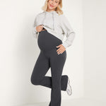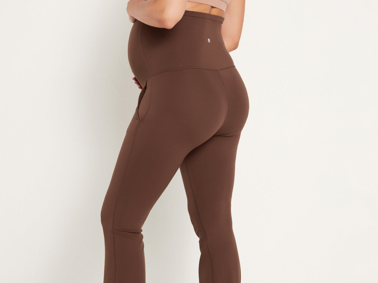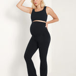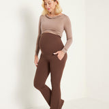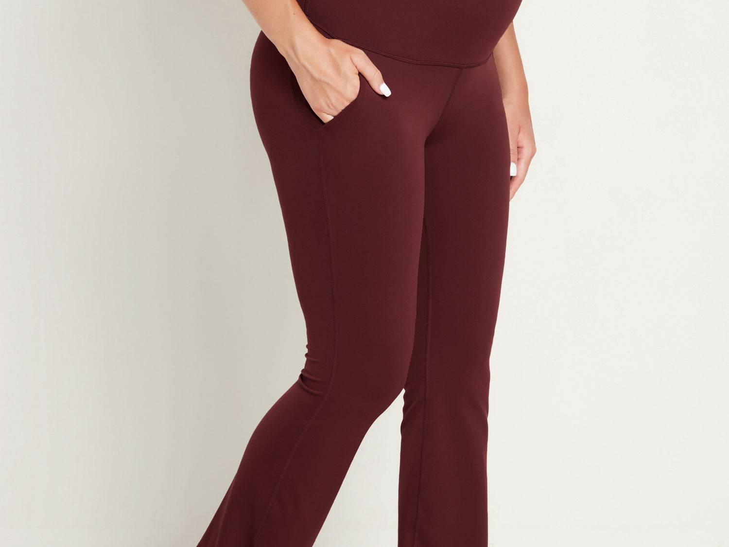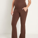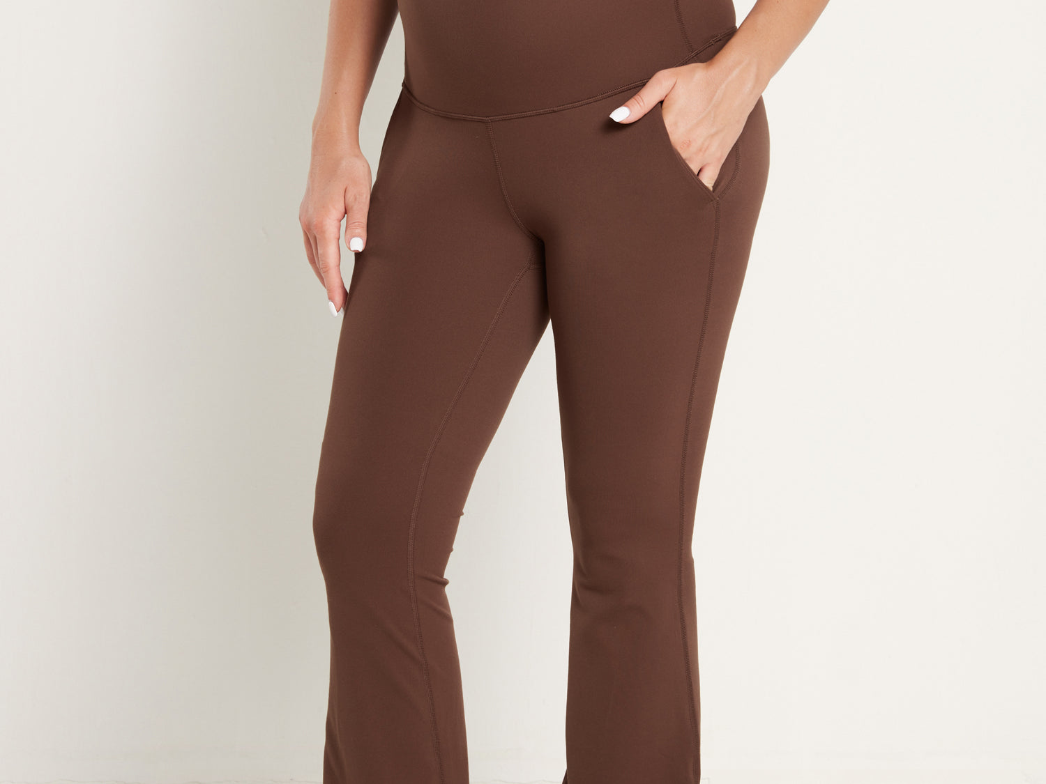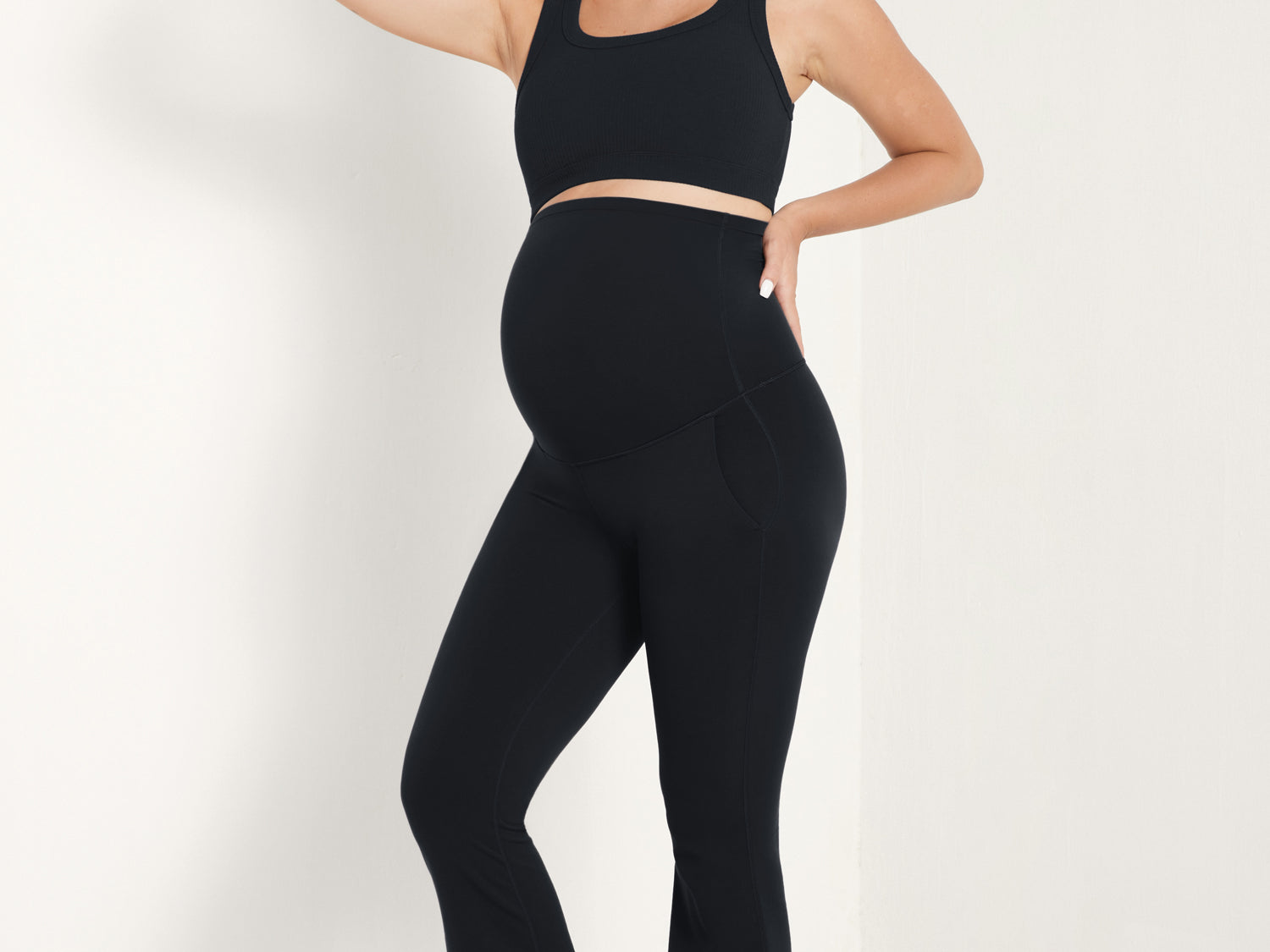 It offers a blend of comfort and style. Soft, stretchy fabric with a high rise and 31" inseam supports your growing bump, while the U-shaped belly panel and side pockets add convenience. Moms love the full coverage, practical support, and chic flare leg design.