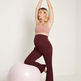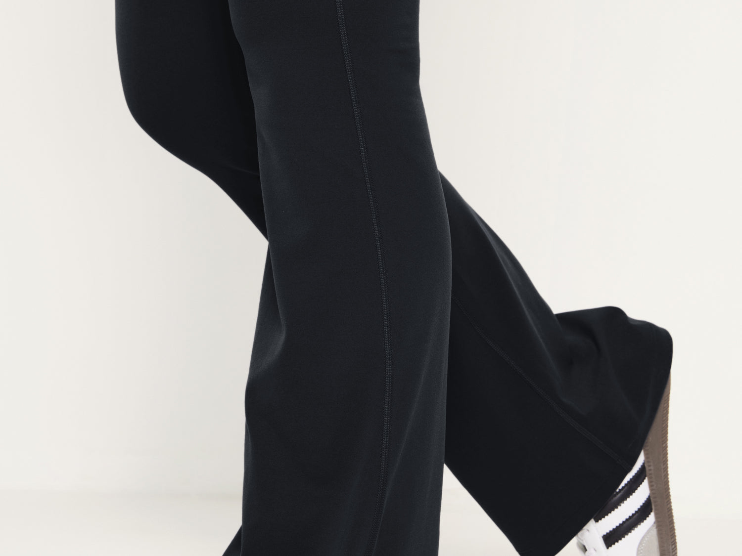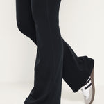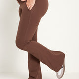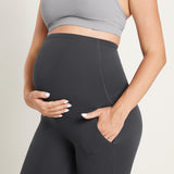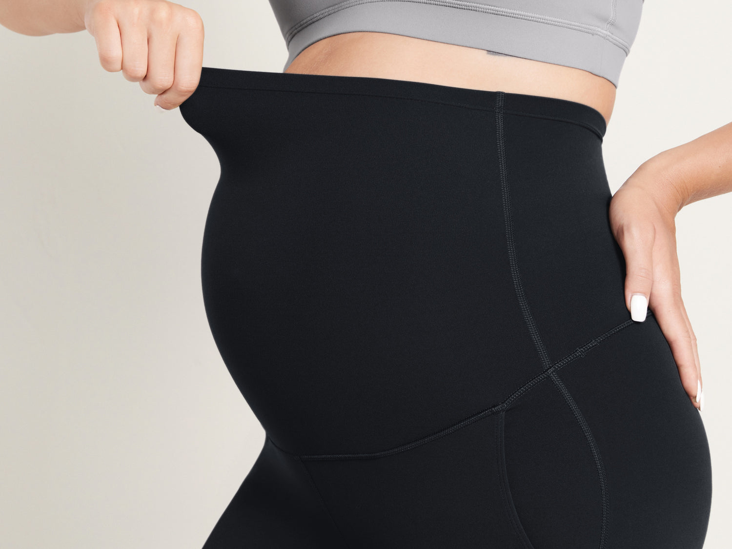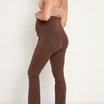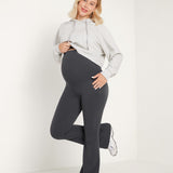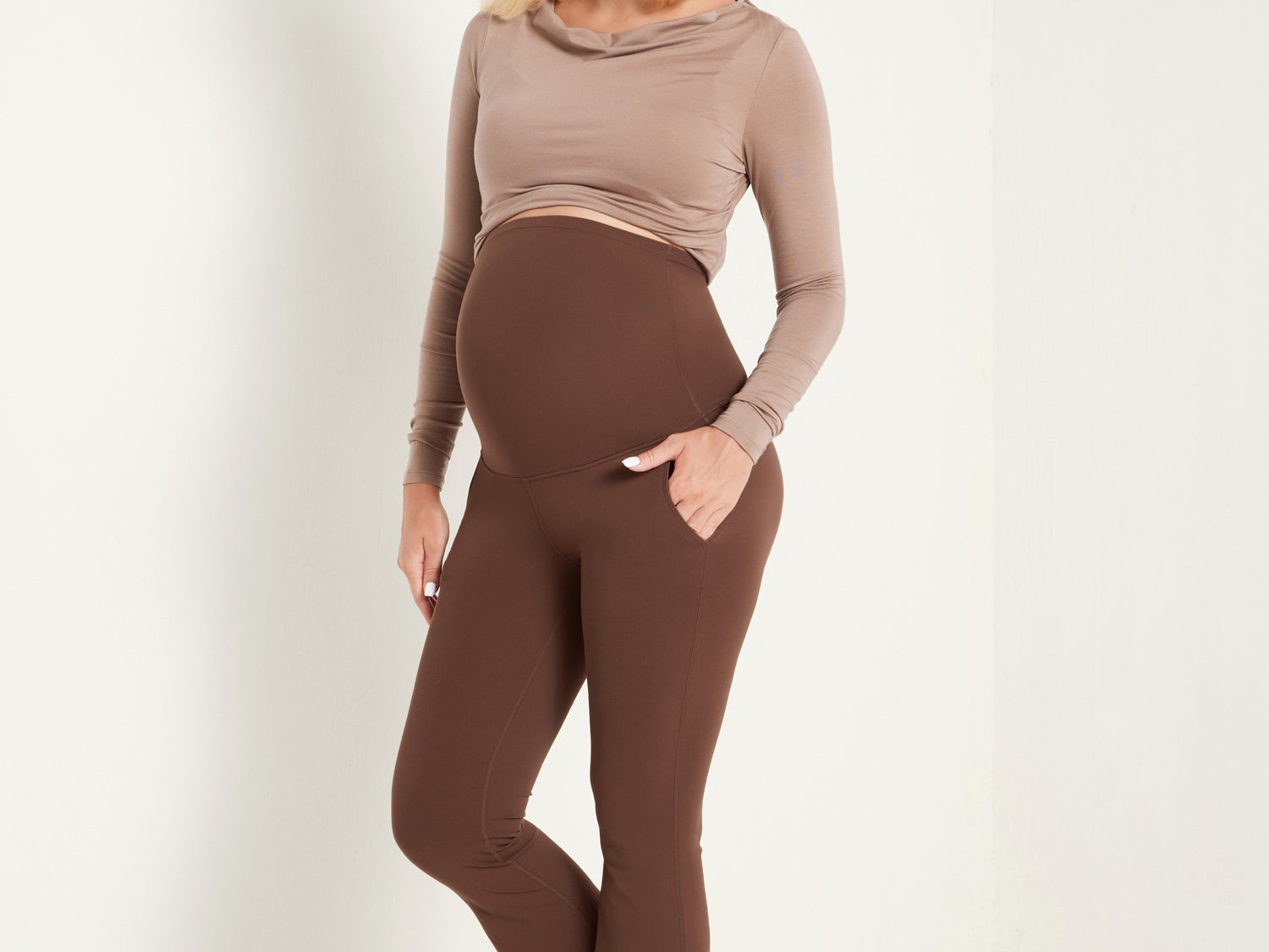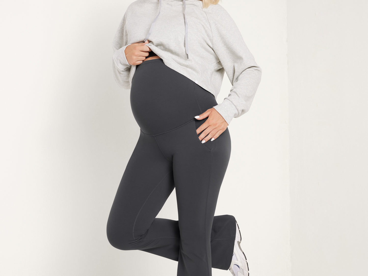 It offers a blend of comfort and style. Soft, stretchy fabric with a high rise and 31" inseam supports your growing bump, while the U-shaped belly panel and side pockets add convenience. Moms love the full coverage, practical support, and chic flare leg design.