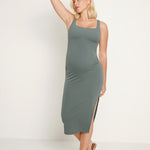 It‘s your go-to for a comfortable and chic pregnancy and beyond. With a built-in shelf bra for support and our signature Butterluxe fabric for softness, this dress hugs your curves in all the right ways. Its ruched sides and slim fit ensure a perfect fit as you grow, making it ideal for work, weddings, or everyday wear. Sleek and stylish, this dress is the epitome of maternity elegance.